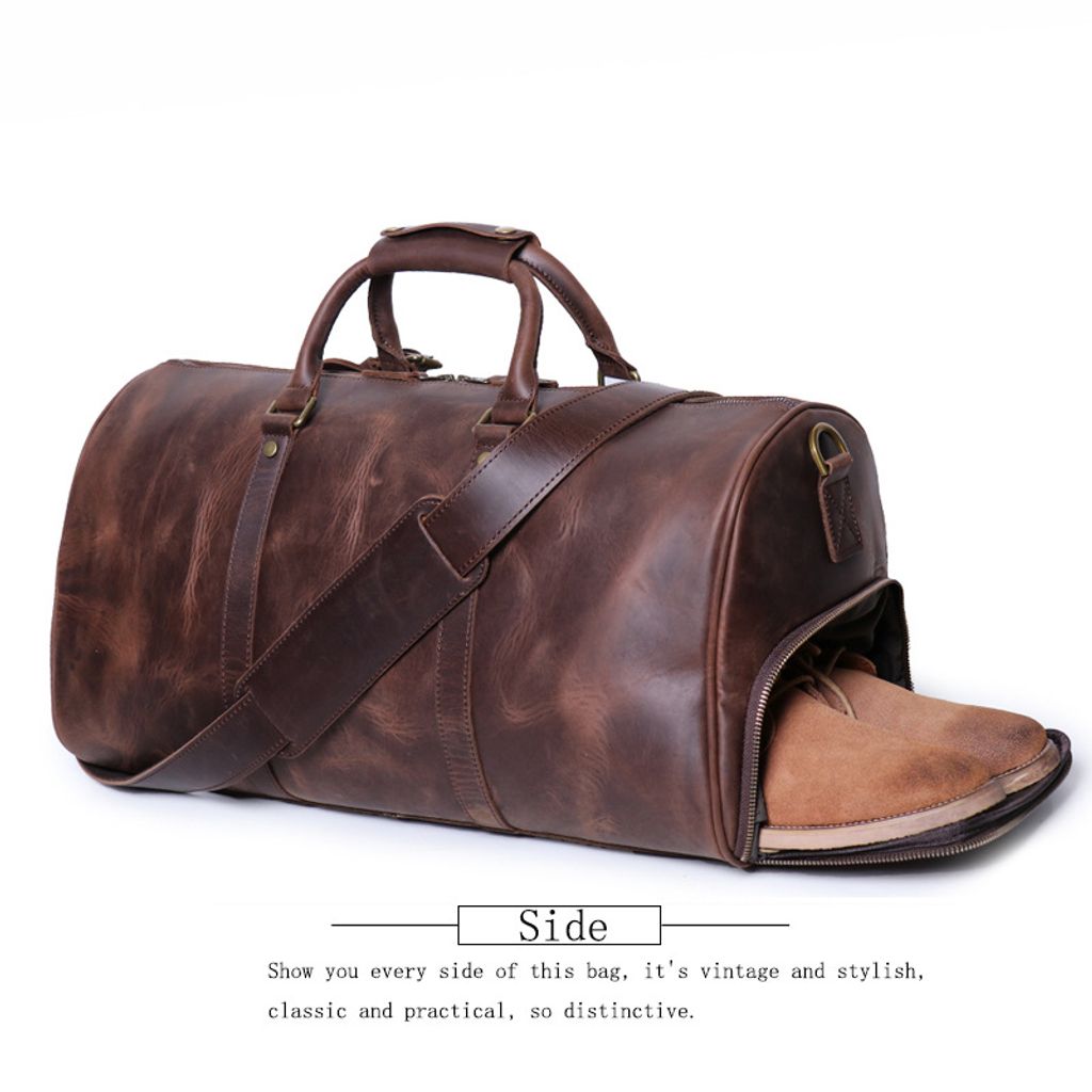 Men's genuine leather hand-held travel bag - Wild Horse leather crossbody bag for business travel and luggage storage 复制 复制