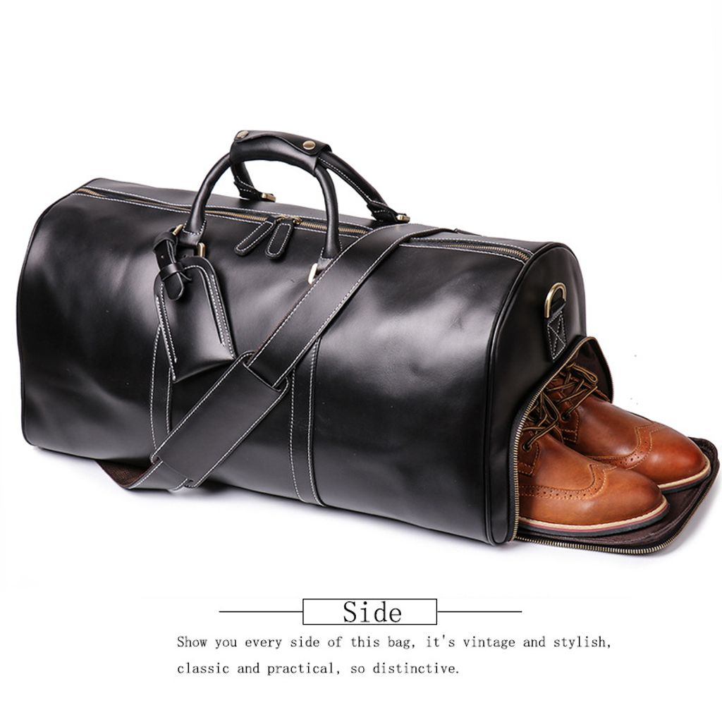 Men's genuine leather hand-held travel bag - Wild Horse leather crossbody bag for business travel and luggage storage